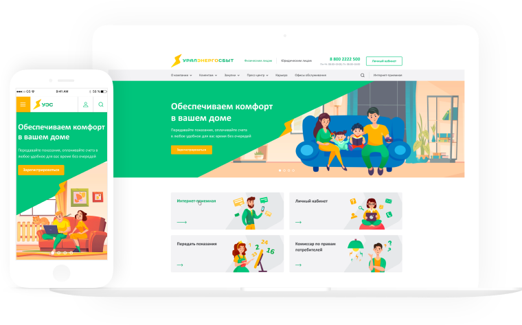 В результате анализа сделали вывод, что самым верным и правильным решением будет разделить сайт на 2 основных раздела: для физических лиц и для юридических, а также в обязательном порядке сделать сайт адаптивным.