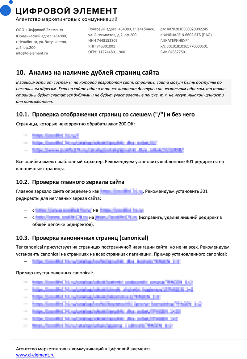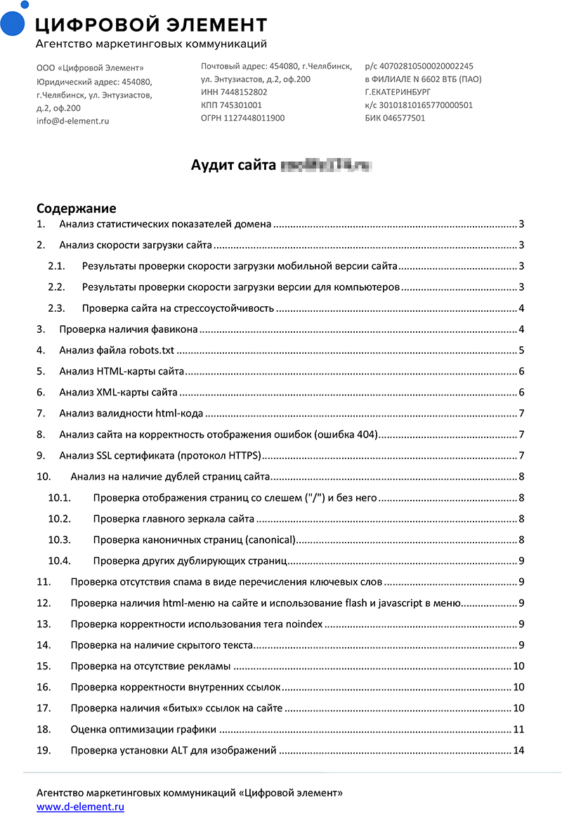 Мы оказываем услуги технического, поискового, внешнего и комплексного аудита. В результате Вы получаете многостраничный документ, с которым можно работать самостоятельно или привлечь подрядчиков.